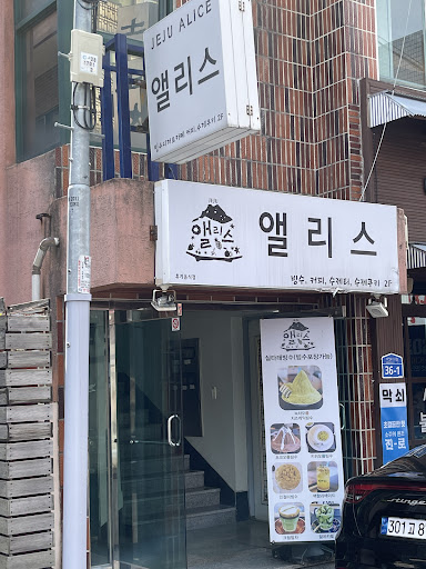 Alice Bingsu is a new bingsu hotspot that opened this past September 9 near Jeju City Hall. They have the most unique bingsu / shaved ice texture I've ever seen. Visually, it's sort of like shredded wheat when you scoop into it. (They also have a more traditional snow version that is icier than I would like.) Love the sauces you can dribble on some, as well as the cheesecake slice that tops some. I've enjoyed both the ๋ น์ฐจ์ค๋ฆ (green tea) variations and the choco-oreo so far. Like many bingsu places, you'll want to share an order with at least one other person! (Check out ์จ๋ฆฌ์ค...