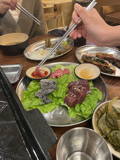 We ordered Korean Beef and Jeju Black Pork, and both was really good. The black pork was served with a special sauce that was also really delicious. The beef was a little bit pricey, but as you can see in the picture, the meat's quality was really good. The side dishes was not as much as the other restaurant, but it tastes relly delicate. The workers are very friendly, even though I can only speak korean in beginner level.
