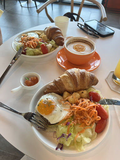 Read moreThis place has amazing brunch food! We had eggs with burger meat, some potatoes, fresh salad with regional carrots and a freshly baked croissant. The service is kind and open to foreigners speaking English. The menu was in English and had illustrations of the dishes. Of course everything is tangerine and carrot themed, and it’s so very cute. All around their 3 floors there are spots to take pictures, they even let you borrow their tangerine headbands. The view of the sea is amazing on a sunny day. I really recommend this place for a more western breakfast...
