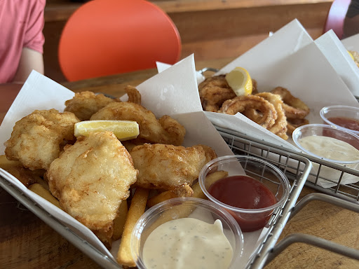 I cannot recommend this place HIGHLY enough. The fish and calamari were super fresh and done to perfection, not too tough or greasy, really crunchy and flaky. The fries are fresh cut. You can hear the hot oil crackling away as they prepare your food. We met a guy who lived in the UK for some time and he said he thought the fish and chips here were even better ๐