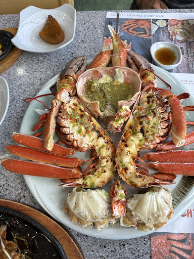 ย ย ย Read moreOverlooking the coast, this place is great. We came for lunch on our last day in Jeju before heading to the airport. Very friendly staff who are upfront with market price for the day and will calculate based on weight of specific crab. King crab was out of our budget, but we did get the snow crab & lobster set for 2 (210 kwon). Came with a bunch of appetizers, shrimp, fish, abalone, raw marinated crab, fried fish, Seafood pancake, and much more. We left feeling very full...