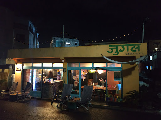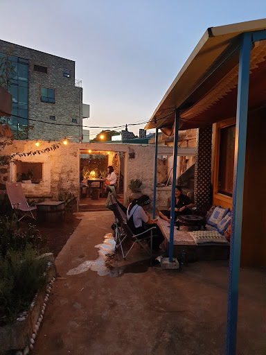 Latin music bar with a melange of nova bossa nova, samba music, cuban guajiro ala buena vista social club, some Cumbia, merengue, beach house, with local magpie and European artesan beer and lots of little snacks. Its your Latin american corner bar meets some middle east elements with Persian or Pakistani rugs in one room where guests take off their shoes. Good alternative to the typical modern hamdeok vibe. Try it once at least. I've been to many places in South America and Cuba so it feels that vibe, very rustic and bohemian. I didn't try the food since I just ate dinner but...