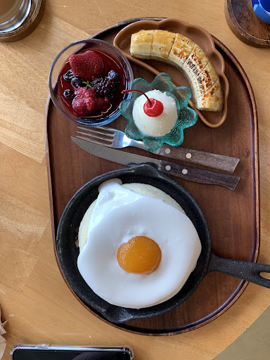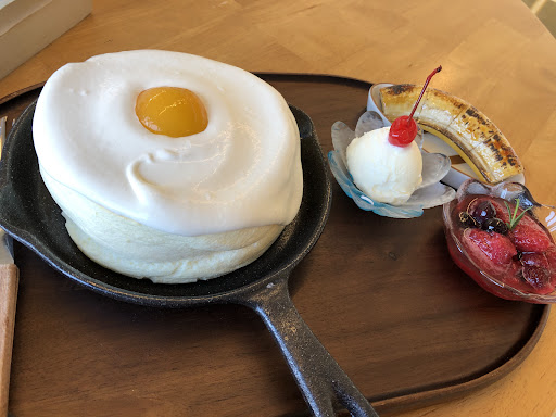 ย ย ย Read moreExcellent food and excellent service! I came by once previously, arriving after they stopped taking new food orders at 4, and when I came back a week later to try again, they remembered and made sure to fit me in! I ordered one of the soufflรฉ pancakes, which had cream cheese sauce, berry compote, vanilla ice cream, and a crisped banana. They nailed the whipped cream-like texture for the pancake, and I really enjoyed the presentation. They made an โeggโ on top from cream cheese sauce and fruit! This is definitely the place to go for fun new pancakes, but I would recommend arriving by at least 3:30! This place is popular, and because it takes time to make a good soufflรฉ pancake, their kitchen stops taking...