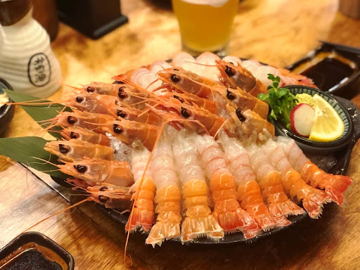 The shrimp sashimi is definitely recommended. They'll take the shrimp head and fry it in butter for you as well.