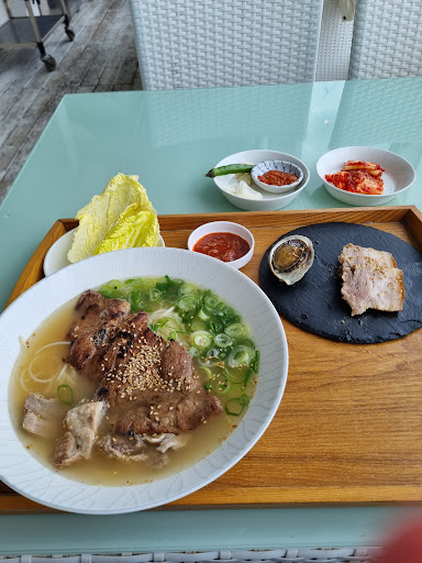 Read more#애월 #제주 #갈비국수 #하갈비국수 #돔베고기 #비빔국수 #하이월드 . 저번에 돔베미니고기를 얻으려고 빠르게 업했는데 그래도 리뷰는 써줘야하기에 다시 업로드! . 애월의 카페가 모여있는 곳에 있는 갈비국수집! 딱봐도 대기업에서 운영하는 느낌이다. 하이월드는 어디인가. 여기 식당 아래 브런치집? 옆에 카페 빵집 다 같이 하는 느낌이 있다. . 옆에 산책로도 있고 통유리로 바다를 바라보게 되어있고 주차장도 있고 (뒤죽박죽이지만) 해서 사람들이 많이 찾는듯하다. . 일단 국수는 꽤 맛있는 편. 체인과 같은 느낌으로 일정 이상 맛을 내어준다. 그릇도 크게 해서 인별감성도 좀 넣었고, 국물은 조미료맛이 조금 나는 것 같지만 칼칼한 매콤함도 들어있다. 맛은 대중적인맛! . 국수 위에 돼지갈비를 넣어주는데 먹을만하다. 그래도 가격은 사악한편! 보통 갈비국수 7천원인데 1.3만을 받긴하다. 난 가격을 제껴도 멸고국수 한표! 사실 여기의 두꺼운 면을 그렇게 좋아하는 편은 아니다 ㅎㅎ . 그래도 식사후 산책도 하고 옆에 몽상드애월이나 랜디스도넛을 방문하기 좋아 식사와 산책 커피가 한방에 해결이라 근처에...