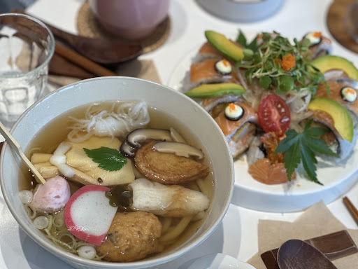 Menu I oredered: Tamagosando, Crunch chicken roll, Udon, Filadelphia salmon shrimp roll