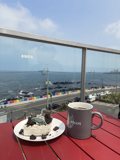 Read moreA must-see cafe in Jeju!! Such a beautiful, open space with an amazing view of the beach and rainbow road! Their coffee and desserts are very tasty and match the view! Makes the experience that much better. Nice spot for your instagram, haha. They have the whole building so there are 3 floors with such aesthetic spots throughout. We got the whole rooftop...