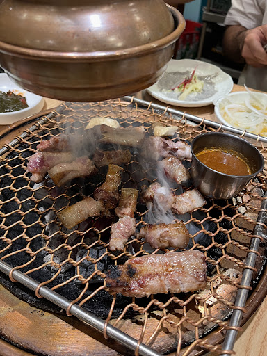 The lady (we think she’s the owner/boss) was very friendly/helpful and took time to explain and answer any questions. She made sure we enjoyed our dinner Korean style…it’s all in 1 bite! The meat is grilled at the table over charcoal, which she also assisted with no problem. The meal came with several banchan items and she even brought us some different Kimchi options to accommodate our food.