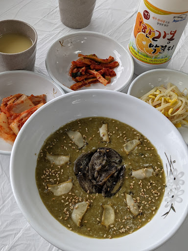 The abalone porridge was very good but the star of the day was the sashimi noodles. Raw sashimi, noodles, vegetables and chilli all in one, like bibimbap. Highly recommended if you want a taste of local cuisine. It's right by the sea so it's meal...