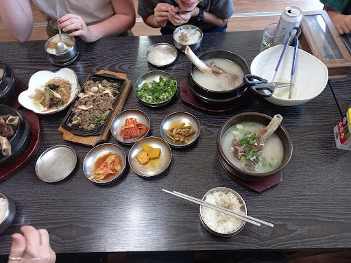 Beef soup. You have to cut the beef off the bone with scissors and tongs but once you do and add salt and pepper its really good. Don't let the looks turn you off. You can also add the rice into the soup or there is a green sauce they jave as well. My picky kids ate it once i cut the meat up...