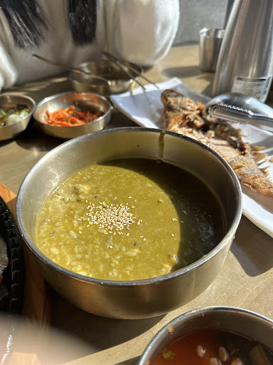 Read moreVisited Myeongjin on a rainy day. Would say this would be a nice stop to enjoy some hot food and delicious abalone. Welcomed by a male staff who looks like the boss, could speak little English and tried to recommend me the rice or the porridge. I decided to order the rice as it looks more fancy. Wanted to order something else but was wondering the portion of it would be too much so decided to hold on to it until finishing the Stone Pot rice. Have to say it's well executed and it tastes very good. The abalone was very fresh and tasty and the rice was flavourful. I followed the steps to take the rice out of the hot stone and pour little water to the remaining rice in the hot stone and let it simmer. It was pretty good as it turned like a semi porridge state as well as could eat the burnt rice in it. Was quite full but then thought I should order the abalones to try. Too bad the portion was at least for 2 persons and I asked if they could half the serving and they said no. I think this is a common thing happening in Korea where most of the items are pretty big with at least 2 to share for a start. So ended up just having the hot stone pot rice with the banchan small dishes. Was surprised there was a fish that came with it and it was so good there were literally no bones in the entire fish! Very enjoyable and recommended though the location is a little...