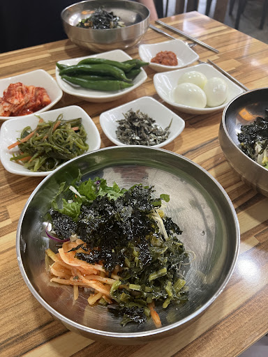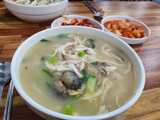 Lovely little restaurant that specialises in knife-cut noodles (kalguksu in Korean) and open. We got the large portion of noodles and a small portion of bibimbap, and you get a range of side dishes that you can mix with your order. For us, we got seaweed and kimchi and dried anchoviesโฆ but I am sure there will be different types of side dishes depending on the season! The food is affordable but there is no toilet in...