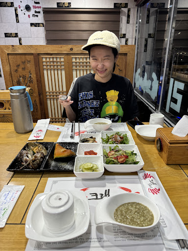 Saw the huge tanks of crabs and lobsters, went in to check it out. The English-speaking waitress recommended the King Crab set for 2 person. KRW200,000, approx SGD$240. After ordering, felt a bit of buyers' remorse. Was worried that it was overpriced. First came an array of seafood and shashimi, ranging from prawns, abalone, octopus, preserved crabs, conch, tempura prawns. Impressive! Still, we were still skeptical. We could be overcharged. Then came the Snow King Crab. Oh my goodness! It was huge! Ok, we did not feel so bad after seeing our 2kg worth of King Crab. Halfway through our King Crab, the waitress came in with… a 1kg Boston Lobster (Cheese Baked) Aaarggghhhh… we nearly fell off our seats! We struggled to finish the humongous seafood spread. Yes… s-t-r-u-g-g-l-e-d! We left the restaurant, over-contented. Food-coma...