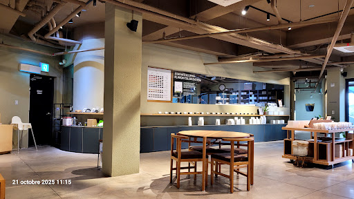 Spanning four beautifully decorated floors, the café features a spacious courtyard with a large tree, adding to the open, airy feel. The barista station is open, allowing you to watch the baristas grind the beans, bloom the coffee, and craft your drink, adding to the overall experience. Art is displayed throughout, enhancing the ambiance. Additionally, they offer brunch, making it a versatile spot for any time of day. Highly recommended for both the coffee and...