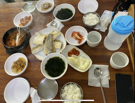 This cozy place offers a great set menu which includes a grilled cutlassfish - famous in jeju, Braised Mackerel, seaweed soup with Sea urchins, and about 5-6 side dishes. The menus may be new to foreign tourists but it's actually a great set for Korean tourists which has mostly famous food from jeju. If you want to try a bit of authentic jeju food and you are alone, then I highly recommend this place. The food can be a bit salty but with white sticky rice, the balance is good enough.