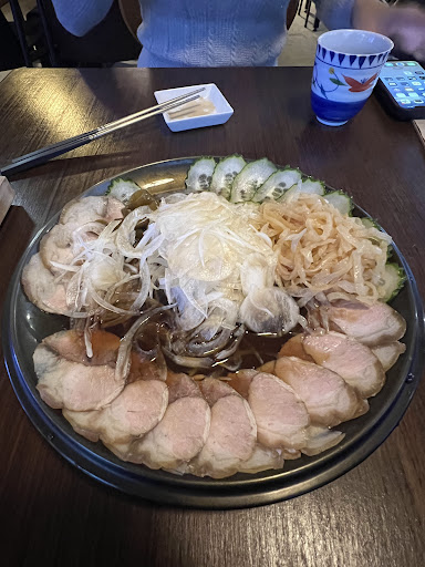 Everything was delicious and the atmosphere is nice too. We had black pork (this was the best dish), oyster sauce pork with bok choy, shrimp croquets, and a fish with sliced pork, thin cucumber, something sour, and sliced jellyfish which was very delicate and nice. Super glad we came here! Note that the menu changes daily according to what’s fresh.