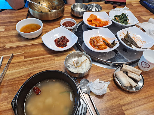 점심시간이었는데도 밥이 새로 지은 것같지 않고 질고 떡처럼 굳어있어 잘 비벼지지 않았고 뜨거운 국물에도 덩어리져 잘 풀어지지않았습니다. 갈비탕엔 사진속 갈비뼈 4대가 있었고 두대는 살이 좀 붙어있었으나 작은 사이즈의 뼈엔 고기가 별로 없었습니다. 계산대옆 원산지표에 따르면 갈비탕 고기는 뉴질랜드산입니다. 결국 고기만 건져먹고 밥은 먹지 않았습니다.