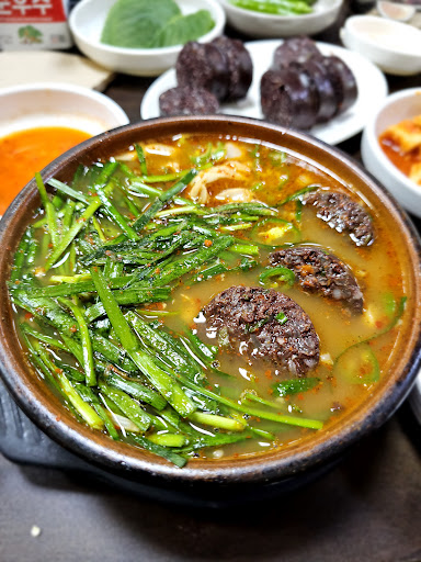 Read moreProbably closer to 3.5 if I had to score it. They mainly do blood sausage and oppal soup and nothing much else so if you don't like heavy soups this isn't the place for you. The blood sausage is real thick.. not size wise but consistency wise. You can taste the gritty texture of the congealed blood.. which gives it a unique and authentic feel/taste. I enjoyed it because it was different but I probably couldn't finish a plate of it by myself and I love blood sausage. The soup was good and packed with oppal. Only downside were the side dishes. It was basic and not tasty at all, also it's self serve (down to the water and sauce). Would recommend to hardcore 순대국 lovers but not to...