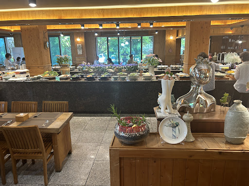 Read more18,900원/인 가격이다. 채식중심으로 유기농 밥상을 추구하는곳 같다. 전문 조리사가 정성껏 음식을 만들어내온다. 육류는 오리와 닭 튀김이 보인다. 흑임자죽과 호박 등 다양한 샐러드 에피타이저가 있다. 양념된 반찬은 비빔밥 재료로 쓰면 좋다. 묵 몇 종류. 두부. 버섯류 디저트 과일과 수제 빵. 요거트 아이스크림 주스와 커피등이 마지막을 기다린다. 쌀국수와 잔치국수 스파게티 딤섬 등도 맛이 좋다. 건강을 위한 정성이 고맙다. 주변 나무 풍광과 피아노곡 전체적으로 wooden 인테리어가 차분한 식사가 가능하도록 돕는다. 삼삼한 맛 덕분에 많이 먹을수는 없겠다. 가성비를 생각하면 자주 오기에 주저되는 부분이 있다. 시그니처 메뉴가 없다. 뭔가 좋은 음식을 먹었지만 딱 부러지게 맛있고 내 배를 채워준 그 뭔가가 없다. 높은 산 정상에서 먹는 라면맛이다. 뭔가 먹기는 했는데 궁극의 맛이 아직도 아쉬워하는 허전함이 느껴진다. 속을 깊이 비워두고서 방문하여 천천히...