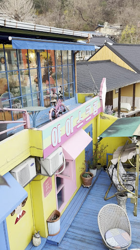 As you stroll down through the alley ways filled with murals of all colors, i was greeted by the soft pink and blue of this seemingly little and cozy cafe that when you go inside, expands out to the city of jeonju. You can feel the love and care the owner has put into the cafe as you are examining through unique furnitures to find a cozy spot to sit in. Every corner has a bit of a personality on its own while blending so well with the mural walls surrounding. The owner was as sweet as the cafe. Recommend to everyone who is visiting the city to stop by for relaxing time and a warm...