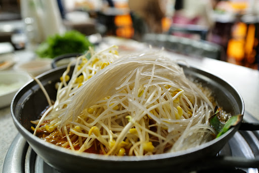 Nov 2023 Delicious Jeonju’s style Mulgalbi restaurant. Galbi cooked in favourful broth with soybean bean sprouts. We couldn’t speak any Korean and the owners couldn’t speak any English. However they are so welcoming and friendly. The moment a staff showed us to our table, an old granny, which I think is the owner, immediately put a pot with heaps of stuffs on top of the stove in front of us. They used hand gestures to show us what to do and how to eat. It seems like the restaurant doesn’t has a menu as it only serve 1 dish. The size of the pot depends on the number of people we have. Price is by person. Not sure if the staff cooks for everyone but the friendly staff helped us cook so we don’t have to worry about cooking the wrong way. The mulgalbi was super delicious! Just like home-cooked food. We didn’t want to waste the soup so we use the Google translate to order a steamed rice. Had the rice wine, Makgolli too. Very hearty and satisfying meal. Recommend if you’re visiting Jeonju Hanok Village and wanted to experience Korean home cooked food in a local restaurant. When the restaurant has majority of locals dining you know the food is good and reasonable priced. Just walk in, greetings, hand gesture the number of people, sit...