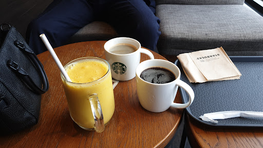 At home, Western Australia starbucks has 1 store near us. It doesn't invite like it does in south korea. The sponge cake is divine and the salted caramel drink yum. The atmosphere is relaxed with built-in power points and usb charge ports as well. No rush to leave. It's like our cafes at home. The cups and mugs for sale along with packaged coffee. My bag is full of cups and mugs for the family. My korean language is limited but we managed despite...