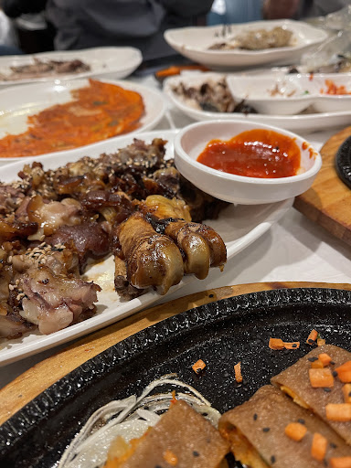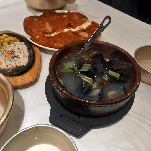 Their menu cover says it all, youโll end up pregnant with food baby. Went here on a Friday, we just wanted magkeolli & ddeokgalbi but it turned out that on Fridays they only serve โmenusโ. We ordered the menu for 2 which came with a big kettle of magkeolli. The menu for โ2โ could feed 4 people easily. It consists of 7 full sized dishes and this restaurant is probable the only restaurant where a waiter would do a โplate countโ to check if you got all the dishes from your menu. The food, considering the quantity, was not bad at all. Some were even amazing like the pork knuckle, omelette, & kimchi pancake. Ginseng chicken was also not bad and the magkeolli - it was exceptional! We ordered another kettle. We rolled out of there since we could barely walk from all the food and...
