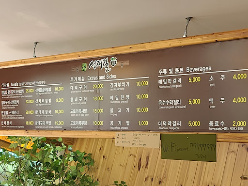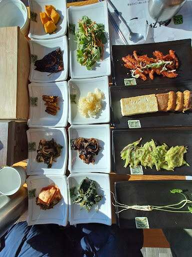 This restaurant specializes in set meals. The basic set meal is rice with more than 20 side dishes comprising bulgogi, deodeok, Korean vegetable pancake, doenjang (soybean paste) soup, seasonal mountain vegetables, fermented vegetables and kimchi. There are other set meals: one consisting of rice wrapped in lotus leaf (₩24,000), one consisting of grilled pollack (₩27,000) and one consisting of both (₩29,000) We ordered the basic set (₩22,0000) and enjoyed the meal. The portion for each dish was not very generous and the servings of bulgogi and deodeok were very small, especially considering that it was for 3 persons. Even though most of the items are refillable, the owner was very reluctant to refill, claiming that we might not finish the refilled items if he provided more. He scrutinized the table back and forth and actually brought some items out but decided not to serve us the refill. We were not impressed with his attitude. We had had yet to finish our meal and would have finished what we had asked for, especially when one of the members of my party still had a good portion of rice. What a stingy owner. He also appeared very eager to wrap up the day since it was past 2 pm. Apparently, this restaurant doesn't have fixed opening days or fixed operating hours and you need to check prior to visiting if they are planning to open for the week. The owner had decided that day to close his shop at 2 pm but had not informed us, which explains why the owner was unhappy that we were eating past 2 pm and was unwilling to serve us. Oh well, he did not inform us of his whims and fancies regarding his operating hours after all so I suppose we cannot be blamed. We originally had a good impression when we started the meal but by the time we finished, this ended up becoming one restaurant that I completely do not recommend simply because the attitude of the owner was appalling. There are also many restaurants nearby serving similar spreads at the same price ₩22,000 (for the basic set), so there was really no reason to patronize this restaurant, which offered plenty of bad attitude and stinginess as a freebie. We went to another restaurant (오대산민속식당) the next day, which was less than 50 m away, did not experience any bad attitude or stinginess there, and thoroughly enjoyed our experience. If you are craving these types of meals, please visit...