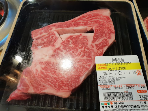 This is the place if you want to experience the real Koean Hanwoo beef BBQ! You get to choose your own beef from the counter and there are many. Different parts, different grades, whatever you want. But the quality is VERY different from other stores. Ive grilled both grade 1 and grade 1+ ribeye, but they both taste AMAZING. You will do your own grilling with the charcoal fire, but that is something you'll never get to do somewhere else. Also, the servers are friendly and kind, and the owner speaks English pretty fluently. She explained the parts and bits to us so that we don't feel left alone on the desert, making some mudpies with the excellent ingredients. Whatever you have question on, you could just ask and she'll get back to you. The bottom line is, if you are visiting anywhere near Pyeongchang or Jinbu, try this place you won't regret. Even if you dont plan to, it's worth visiting just for the very meat that...