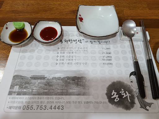 주변 친지중 한 분이 아이들 상견례 때문에 장소를 물색하던중 한정식은 송화한정식이 좋더라고 추천해줘서 예약을 하고 갔더니 화장실가는 복도의 통로가 한 사람만 겨우 다닐 수 있는 형편없는 구조여서 첫 인상이 불쾌했었는데 음식도 부실하기가 짝이 없었다. 추천해준 사람이 원망스러웠다. 손님을 구겨넣어서 주는대로 쳐먹고 돈만 내고 나가라는 식이었다. 화장실의 청결상태도 지저분하여 아차 잘못 들어왔구나 싶었는데 막상 음식도 형편이 없었다. 상견례를 망치고 돌아왔다. 사돈에게 미안하기가...