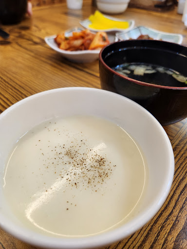 Read more최근 일주일에 한번씩은 가서 점심식사를 하는 곳. 진한 크림스프와 기본우동국물, 김치, 단무지 등은 셀프바에서 무료로 이용가능합니다. 돈까스는 바삭한 일본돈카츠 스타일로, 직접 만드신 돈까스 소스가 정말 일품입니다. 우동은 기본장국의 국물과 같습니다. 우동국물을 장국으로 대체한거죠 . 메밀국수세트를 많이 드시던데 메밀국수도 무난하게 맛있습니다. 기본원돈까스를 시키시면 소스를 뿌려서 줍니다. 저 돈까스 소스는 찍먹이든 부먹이든 정말 🤦 또 먹고싶네요. 새우튀김도 정말 바삭하고 맛있습니다. 테이블은 4개정도로 많지 않고, 12시부터 1시까지는...