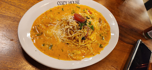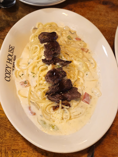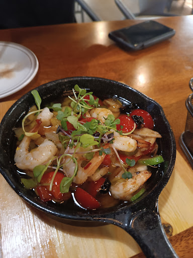 Los cubiertos estaban sucios, pero los cambiaron cuando se lo pedimos. La pasta que comimos fue "espaguetis con albรณndigas" y las albรณndigas saben a mandu. No se saben para nada a una albรณndiga... Las gambas con pan.... Un pan que no es tostado, es pan duro y las gambas estรกn rodeadas de un montรณn de vegetales cuando en las fotos no sale nada de eso. Ademรกs las gambas son un poco picantes con un montรณn de aceite, pero no es aceite de oliva. O si es aceite de oliva de muy mala calidad.
