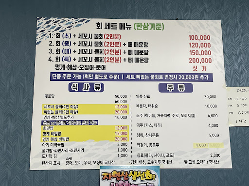성인 네명이면 2번세트(중짜 회+ 물회2인분+ 뼈 매운탕) 12만원짜리 추천해주셔서 그거 시켰는데 넘 잘 먹었습니다~