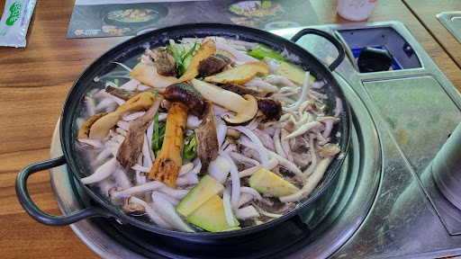 Read more송이전골 맛이 담백하고 구수합니다. 가족이 대부분 매운 음식을 안 먹어서 주문할 때 맵지 않게 부탁드렸더니 국물도 맛있어서 국도 건더기만 먹는 저도 오늘은 전골 국물까지 먹었습니다. 그런데 가지나물도 맵고 메밀묵에 다진고추가 들어가서 맵더군요. 반찬도 대부분 깔끔하고 짜지 않아서 맛있게 잘...