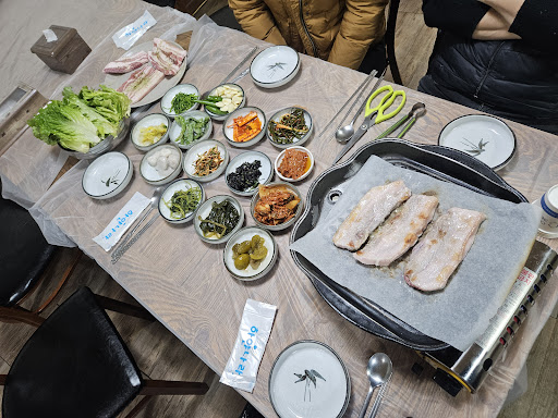 식사는 흑돼지 삼겹살을 먹었는데 당연히 반찬들은 전부 다 수제입니다. 반찬 중에서 달래,묵은지가 가장 맛있었으며 게다가 같이 나온 상추쌈,깻잎 등은 사장님께서 직접 재배한 채소라고 합니다. 상추가 크고 넓은 덕에 쌈을 먹기 참 좋았습니다 👌