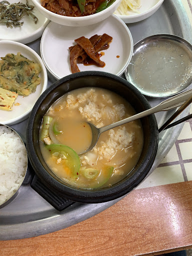 6-7년전에도 6000원이던데 지금도 식사요금이 6000원 그대로! 곁찬 종류 많고 간은 약간 쎈 편. 순두부는 2인이상 주문시 가능. 연한 순두부가 아닌 몽글몽글 순두부에 두부향이 가득함. 정식 곁찬이나 순두부 곁찬이 같다.(김치찌게도 동일) 반찬은 같으나 국(찌게)을 선택하는 시스템인거 같음. 부담없는 가격에 밥 추가...
