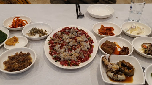 하당먹거리 갔다가 대기가 있어서 이 곳으로 갔습니다 하당은 관광객 갯내음은 현지인이 주로 가는 맛집이라고 들어서 다른 거 먹을까 하다가 갔어요. 금요일 저녁 8시쯤이었는데 텅텅 비었더라구요;; 넓은 홀에 두세팀 정도.. 육회랑 낙지는 뭐 조리하는 게 아니니 익히 먹던 육회 낙지 맛이었습니다. 그런데 후기에 맛있다고 봤던 미역국 조미료맛 쩔고ㅎㅎㅎ 맛있다던 게장 너무 비리고 짜서 맛만보고 손 안 댔습니다. 반찬들은 또 왜글케 짠지ㅠㅠ 일하는 분도 손님도 없었는데 쌈 빼먹고 안 준 것도 한참 먹다 다른 테이블 보고 알았고, 고기 얼마나 남기고 볶아야하는지 물었더니 지금 볶으면 된대서 남은 거 전달했는데 다른 후기 찾아보니 더 먹고 볶아도 됐던 거.. 육회랑 산낙지를 굳이 익혀서 먹었네요.. 계산할래니 또 결제가 잘 안된다 그러고 대환장파티.. 타지역 사람이라고 일부러 이러나 할 정도..^^ 목포 맛집여행 간 건데 이 곳은...