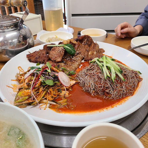두 메뉴 다 평균 이상 혹은 아는 맛이 그대로 재현되는 맛이었고 가끔 리뷰 보면 고기가 미지근해서 별로라고 하는 분들이 계시는데, 뜨거운 고기에 비빔냉면을 싸먹고 싶은 분이라면 양념갈비와 비빔냉면을 따로 시키는 것을 추천합니다.