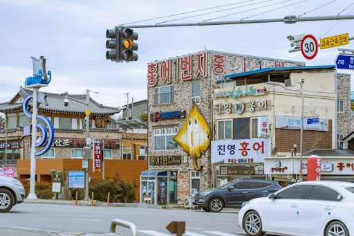 영산포 홍어거리에는 현재 40여 곳의 홍어 음식점과 도매상이 영업중이라고 합니다. 거리 초입에 들어서면 벌써 알싸한 홍어향이 풍겨요. 어떤 식당이 괜찮을지 고민하다가 가장 큰 글씨가 눈에 띄는 홍어1번지 식당으로 정했습니다. 전용 주차장이 있고, 건물은 비교적 최근에 지어진 것 같아요. 입구에는 홍어명인 인증서가 붙어 있습니다. 왠지 잘 온 것 같은 느낌이 들었어요.