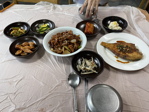 It’s a gem! Small local eatery we found by chance, ordered grilled fish for two persons, and got 2 freshly grilled flat fish (looked like flounder but smallish), sweet and and spicy beef, pork cutlet, and usual set of soup, rice, salad, and kimchi- all for 20,000 KWon! Everything was fresh and...