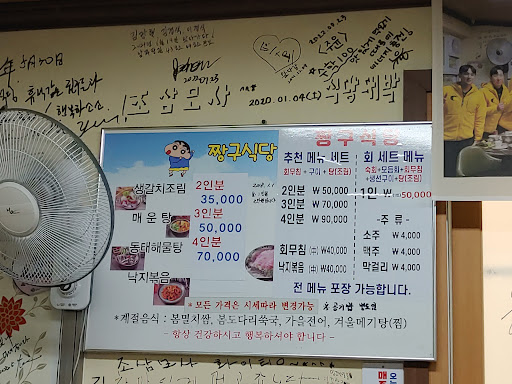 Read more수산시장에서 재료를 공수해 시장 골목안에서 운영하는 시스템임 매운탕 갈치조림등 있지만 그닥이고 다른 리뷰에서 극찬한 멸치쌈밥은 너무짜거나 싱겁거나 복불복인경우가많다 사장님은 매우친절하시나 가격에 봉사료가 따로붙었나보다 맛은 특별할거없지만 보통 다른곳에서 1인분 10000원정도에 멸치쌈밥이 1인분에 16,000원에 판매되고있고(이것도 멸치쌈밥에대한 가격표가 따로붙어있지 않은것을보면 관광객과 현지인을 가격을 다르게받는건아닌지 의심해볼만하다) 맛과 가성비를 따져보면 굳이 읍내에있는...