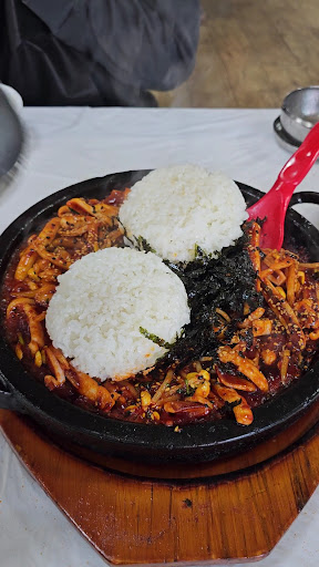 돌판에 끓는채로 나오는 음식이라 양념이 여기저기 튀니까 여기 오실 분들은 흰옷은 피하시는게 최선임. 앞치마는 꼭 착용하시고...ㅎㅎ