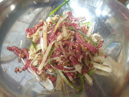 육회 신선하고 배랑 육회 한가득에 조미된 맛이 아니라 육회 그대로의 신선한 맛을 느낄 수 있어 좋았어요. 집이랑 멀어서 나들이 겸 가끔 들려야 겠어요. 너무 만족스러운 식사였어요.