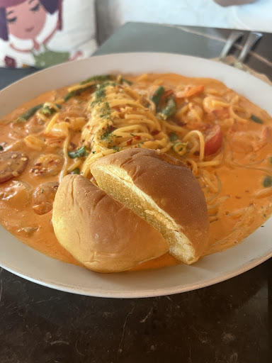 The restaurant is located in 21 Bukhangang-ro 1112beon-gil, Hwado-eup, Namyangju-si, Gyeonggi-do, Republic of Korea. As you enter the place you can see a chair and trees and beautifull views. I liked the bulgogi cream pasta and ricotta Cheese salad. It was delicious. And i liked the legos in there. But the other food was not really that tasty. But i really liked that pasta there. I strongly advise to you to eat bulgogi cream pasta. If you go through that road , I...