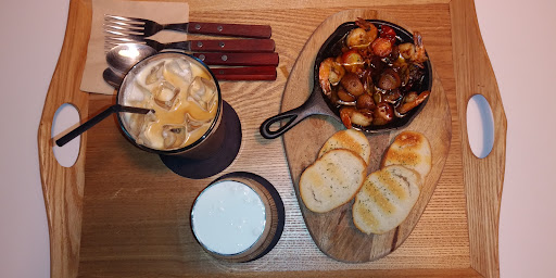 부드럽게 먹고싶다면 빵이 따뜻할때 마늘후레이크를 올려먹는게 좋고 바삭하게 드시구싶다면 빵은 놔두고 먼저 새우랑 버섯을 먹고있는게 좋다. (감바스8000원)