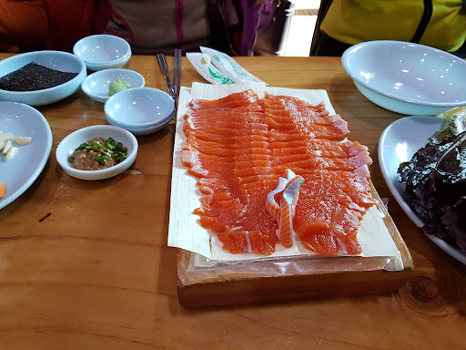 Read more콩가루 반 먹고 왔던 하루!! 고소하니 콩가루 너무 좋아요 ㅠ.ㅠ 야채에 초고추장이랑 참기름 , 콩가루 뿌린 후 송어회 올려서 쓰윽 쓰윽 비벼 먹으면새콤하니 정말 군침돌아요 ㅠㅡㅠ 김이랑 싸먹어도 맛있고!! 깻잎에 싸먹어도 맛있고 ㅜ.ㅜ 감동감동입니다! 송어회무침 처음 먹어보는뎅. 이거 정말 별미네요 +.+!!! 매운탕도 들깨가루가 들어가서 그런건지~ 아니면 송어 매운탕 맛이 이런건지 아리쏭 했지만 추어탕 먹는것처럼 진하면서도 개운한 맛이 너무 좋았습니다 ㅠㅠ 배불러서 매운탕 안먹는다고 했은데. 안먹었으면 울뻔 했어요..;;; 수제비도 넣어주시는데. ㅠㅠ 손수제비라 맛있네요! 부모님 모시고 가기도 너무 좋은 맛집입니다! 약간 공장단지 안에 있어서 꼭 차로 이동...