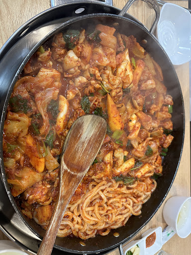 Read more맛있는 닭갈비. 닭고기 부드럽고 큼직큼직하게 썰어내어 만족스러움. 소스가 맵기조절 가능해서 좋고, 보통맛 했는데 색만 빨갛고 매운맛은 거의 없어서 하나 더 맵게 했어도 좋지않았나 싶음. 보통맛을 시켜서 그런가 모르겠는데 양념에 케찹이 들어간 느낌이 들어서 좀 단맛이 있는게 특징. 물막국수도 동치미국물에 시원하게 말아져 나와서 닭갈비와 궁합이 매우 좋음. 볶음밥은 뭐 언제나 완벽..넉넉하게 볶아서 포장해 갈수도 있으니...