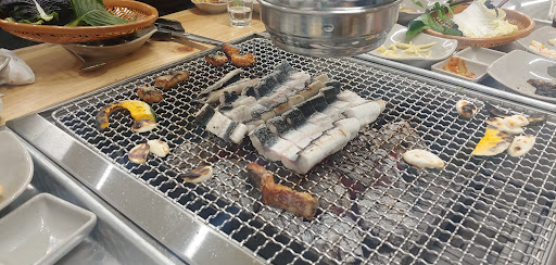 Purchase your eel, and cook on wood charcoal grill at your table. There are fresh vegetables and delicious banchans. Great place,...