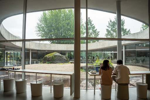 ย ย ย Read moreUnique circular building with an open space rock garden in the center. There is seating outside with a river view. They sell a range of pastries and breads that all looked great. I had just eaten lunch before I came here so I just had an americano.
