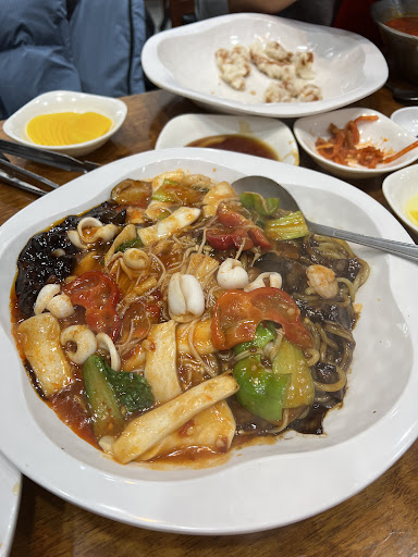 탕수육이 먹고싶어서 검색해서 일부러 찾아갔어요. 탕수육은 고기가 두껍고 크고 냄새도 안나고 찹쌀탕수육이라 쫀득쫀득했어요. 소스 맛은 평범해요. 근데 짬뽕이 너무 맛있었어요. 갑오징어 짬뽕을 시켰는데 와 대박!! 갑오징어 한마리가 통째로 떡하니 올라가 있는거에요. 기본 짬뽕이 8천원인데, 갑오징어 짬뽕은 13천원. 5천원의 차이가 오롯이 갑오징어 값이 아닐까 싶을 정도로 통통한 갑오징어가 있어서 이 집은 식재료로 장난을 치진 않는구나 라는 느낌이 들었어요. 이게 끝이 아니에요. 국물 맛이 맵지도 않고 부드러우면서도 시원한 맛. 소뼈를 육수로 쓴대요. 여튼 매운거 잘 못먹는 울 아들이 넘 맛있다며 행복해 했어요. 짜장은 간짜장인데요. 이 또한 맛있었어요. 소스에 들어간 야채가 넘 신선하고 은은한 불맛이 나면서 짜지도 달지도 않은 정말 조화로운 맛. 짜장 역시 숟가락으로 다 퍼 먹었네요. 다음엔 다른 요리...